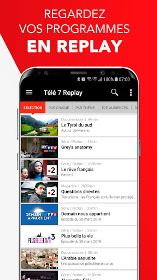 - Nothing on TV? Watch all the programs available in Replay from the app!