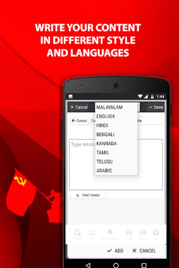 ❤ Add Texts with Hindi, Tamil, Telugu, Malayalam, Bangla, Kannada and english Languages.
