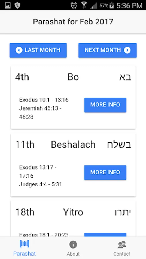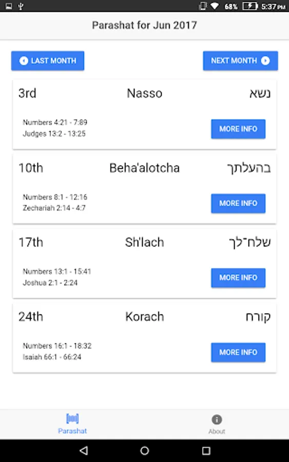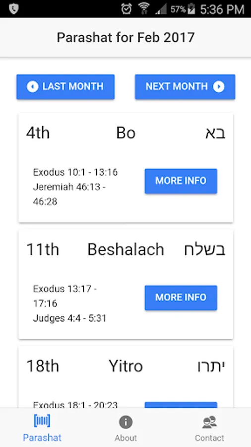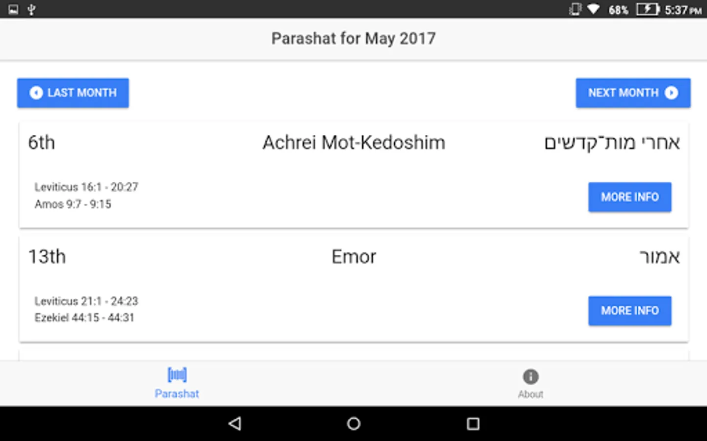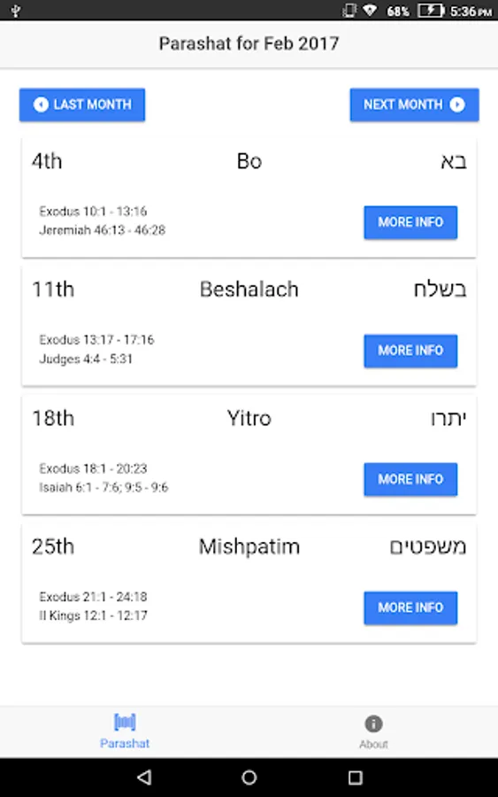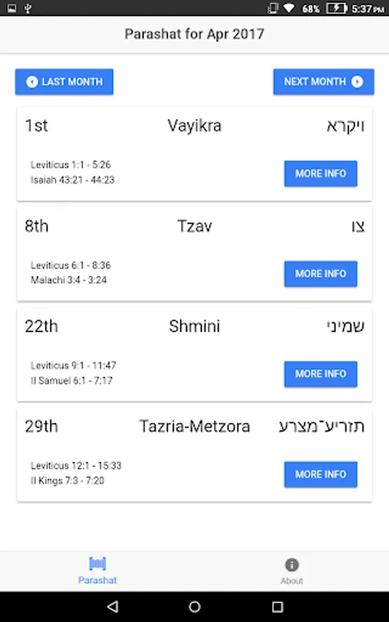 Our Parashat Calendar will quickly and easily get you the Parashat readings for each week.