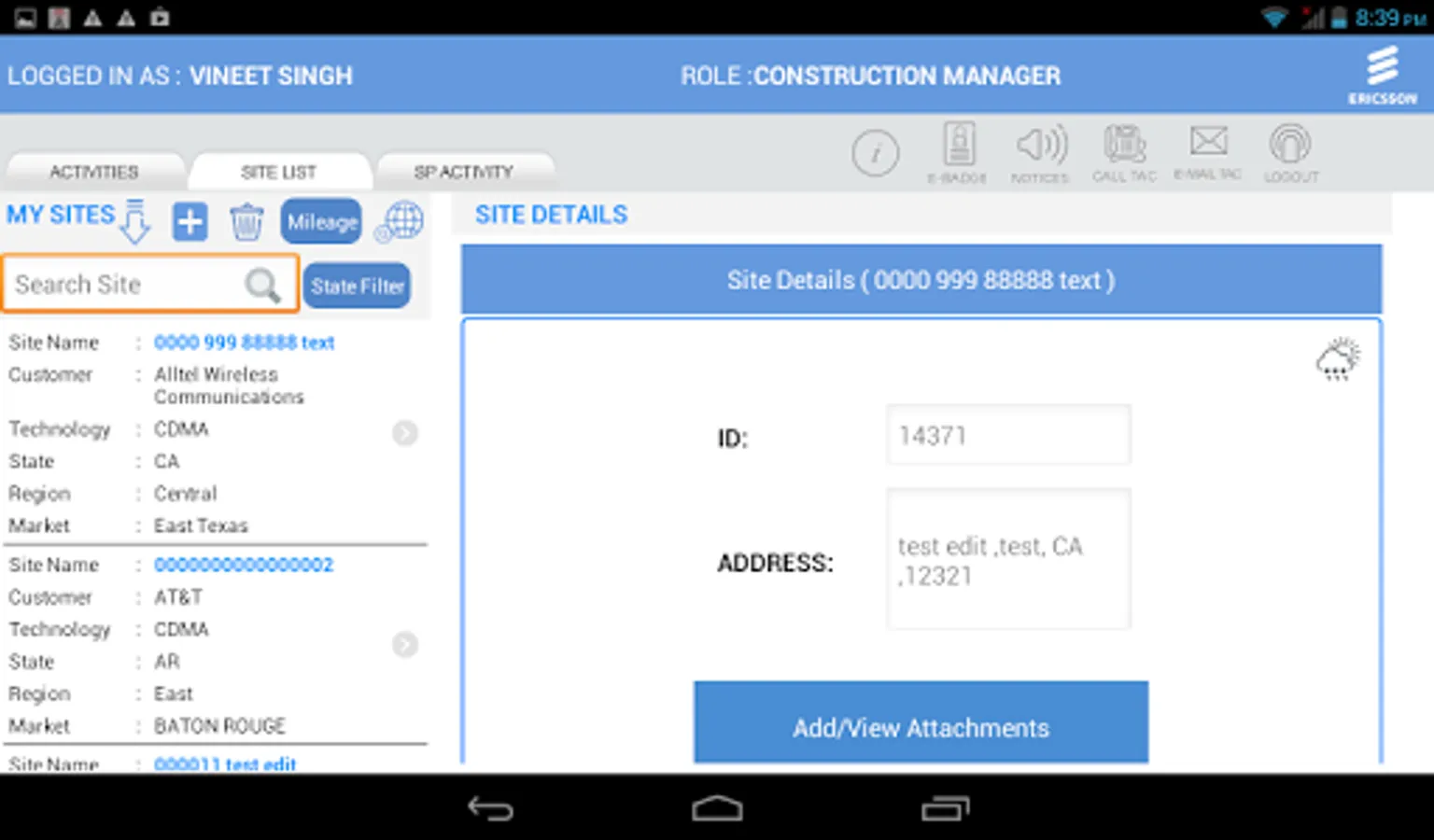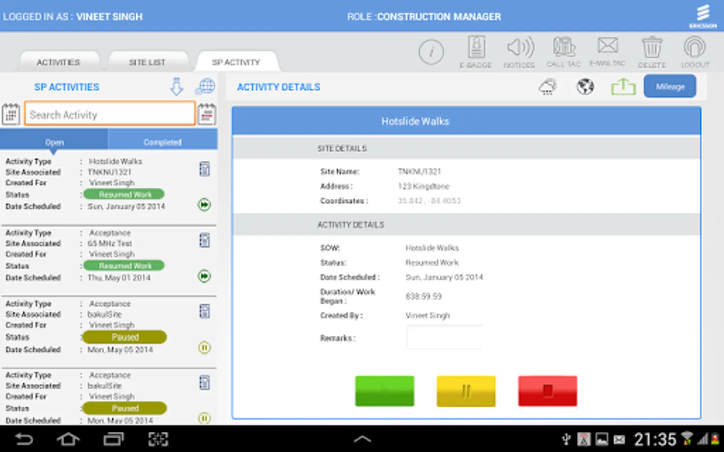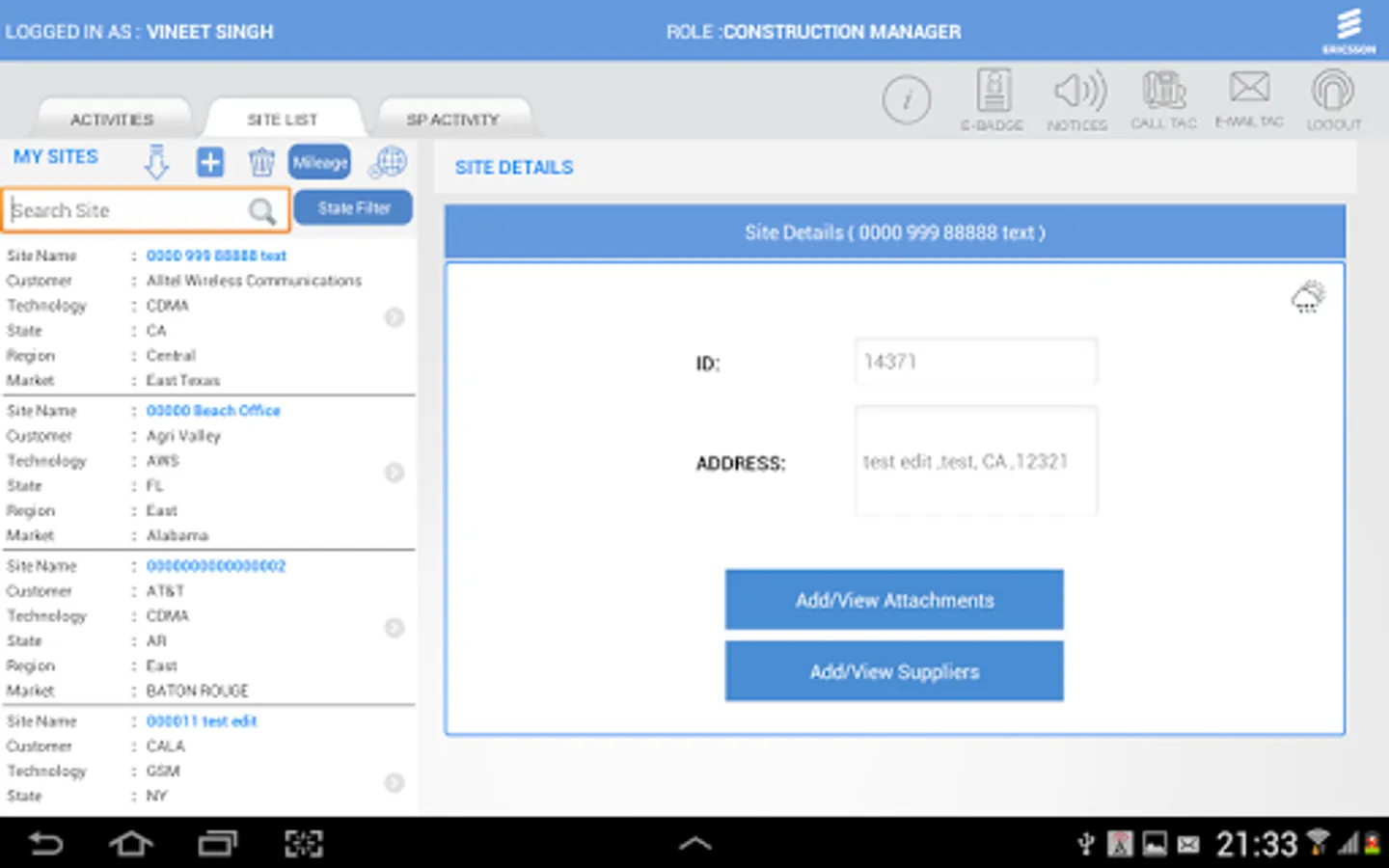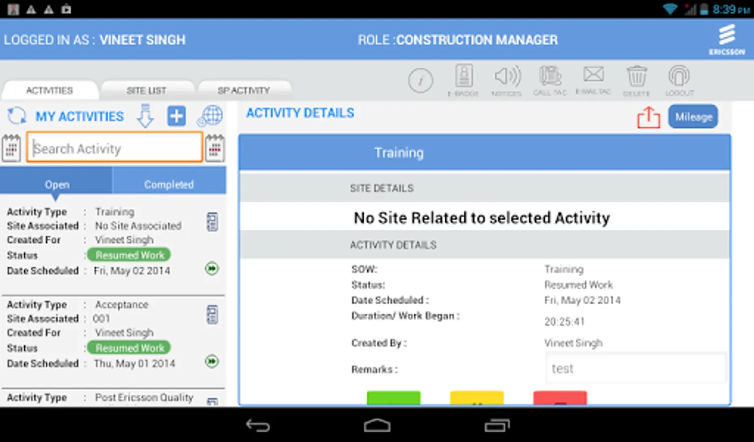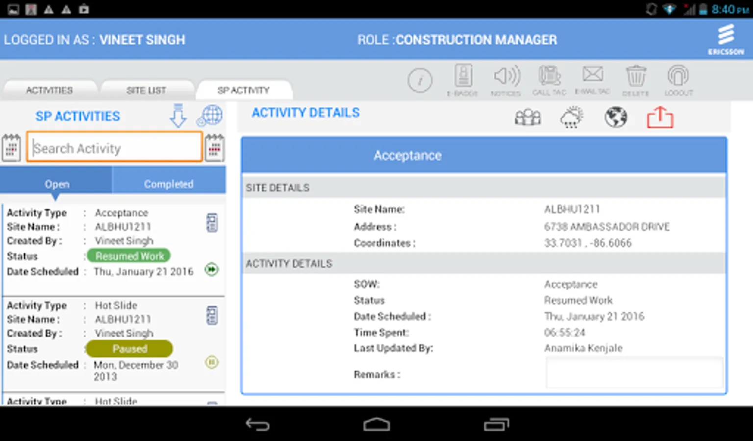 Ericsson Activity Management System. (For authorized Ericsson NBSS apps users.)