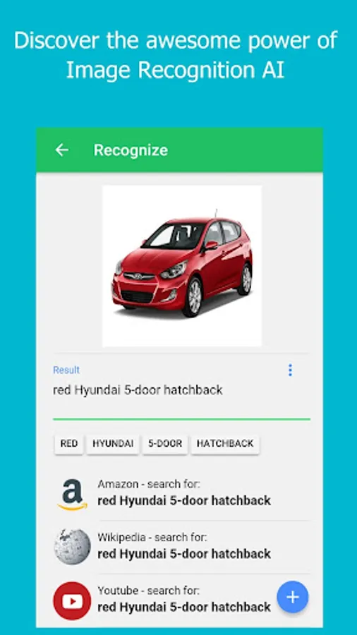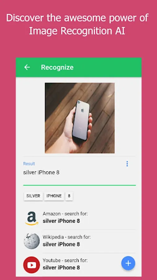 "Image Recognizer" quickly classifies images into thousands of categories (e.g., "sailboat", "lion", "Eiffel Tower"), detects individual objects within images, and finds and reads printed words contained within images.