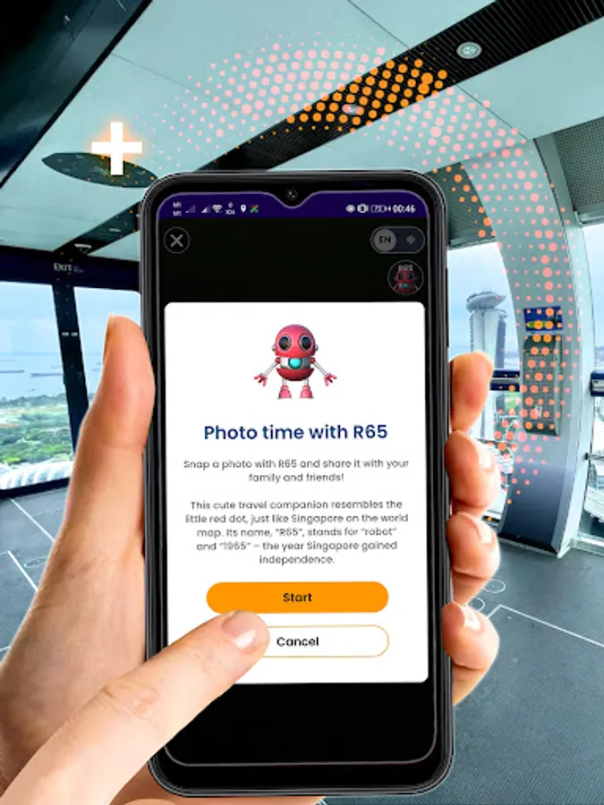 Take advantage of the breathtaking view of the Singapore skyline from your capsule to locate and learn about nearby points of interest with AR assistance.