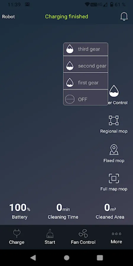 The application allows easy operation of the vacuum cleaner with the help of a mobile phone. In the app, you can turn on the vacuum cleaner in various cleaning modes or set the water level for mopping. You can set up a scheduled cleaning, keep track of the current condition of the vacuum cleaner or its battery level. Thanks to the laser navigation and the creation of a precise map of the cleaned area, you can choose where to clean or not or where to, for example, clean twice