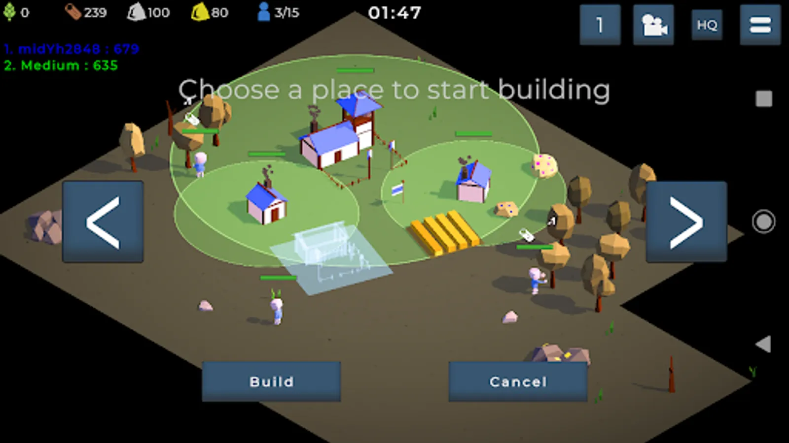 Collect resources (food, wood, stones, gold) to build new buildings.