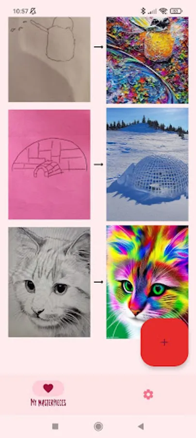 The Masterpieces app allows users to take a photo of a pencil sketch with their phone's camera or select one from their gallery, and transform it into a beautiful, AI-generated image.