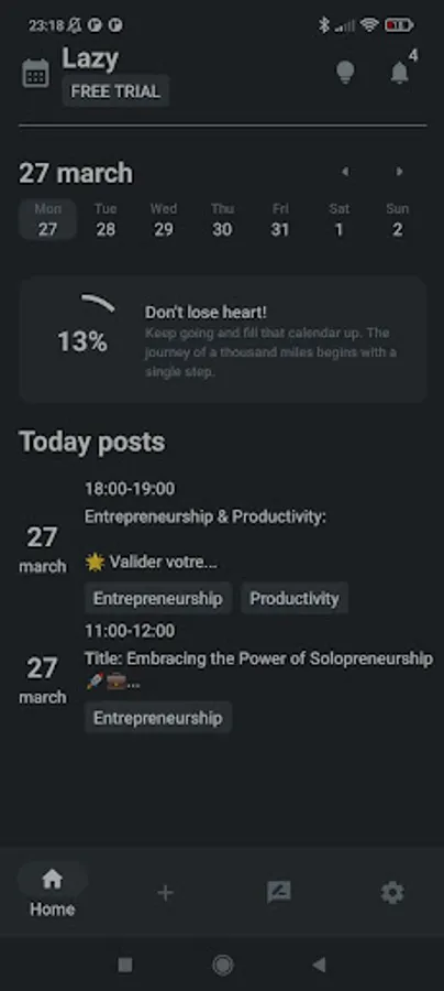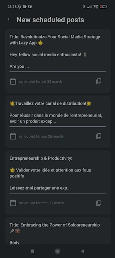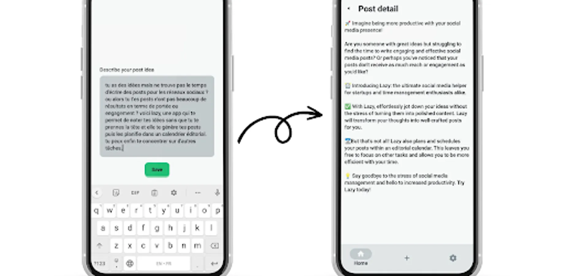 With Lazy, users can easily input their ideas and thoughts into an edit text, and the app will automatically generate high-quality content for social media. The app's advanced AI algorithms analyze the user's inputs and use them to create unique and compelling posts that are tailored to each platform's specific requirements. This ensures that users can reach their target audience and engage them with relevant and interesting content.