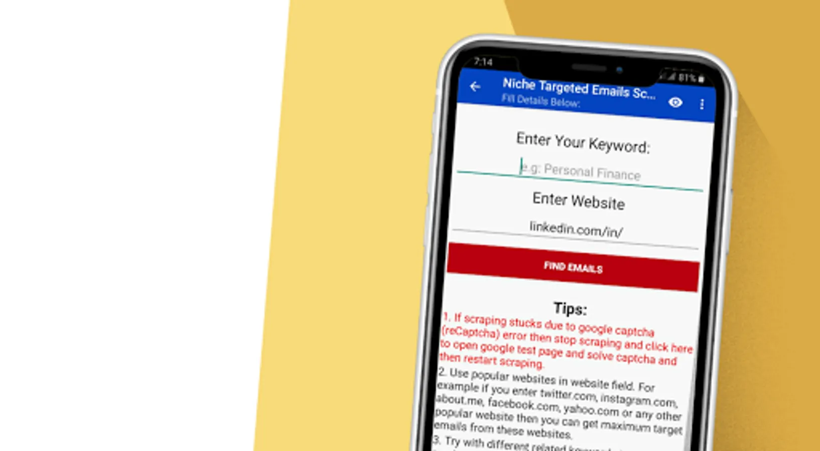 Disclaimer: This app as a Leads and Data scraper is compliant with international law for scraping. According to international law, scraping and crawling publicly available data is legal. And this app scrape only publicly available data over internet and does not scrape any confidential or private data. So using this app is perfectly legal according to international laws.