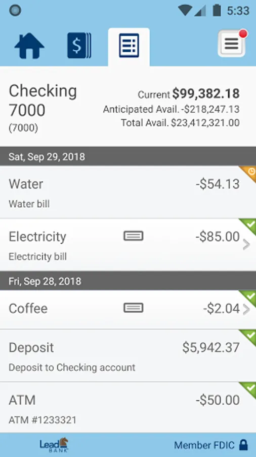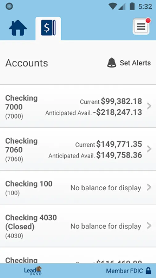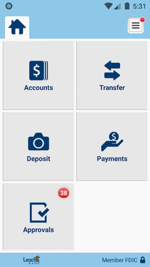 Available to Lead Bank business clients with an online banking account log-in, the Lead Business app allows you to: manage your accounts by checking business account balances, view recent transactions and deposit history, transfer money between accounts, deposit checks by snapping a picture of each check, review and approve transactions for funds transfer, ACH transfers and wire transfers and receive alerts when approvals are pending.