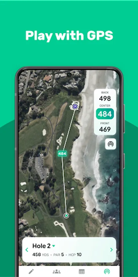 - Free GPS with moveable targets and front, middle, and back green yardages from your current location