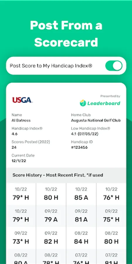 - Posting scores to your Handicap Index®, and viewing handicap data in Leaderboard