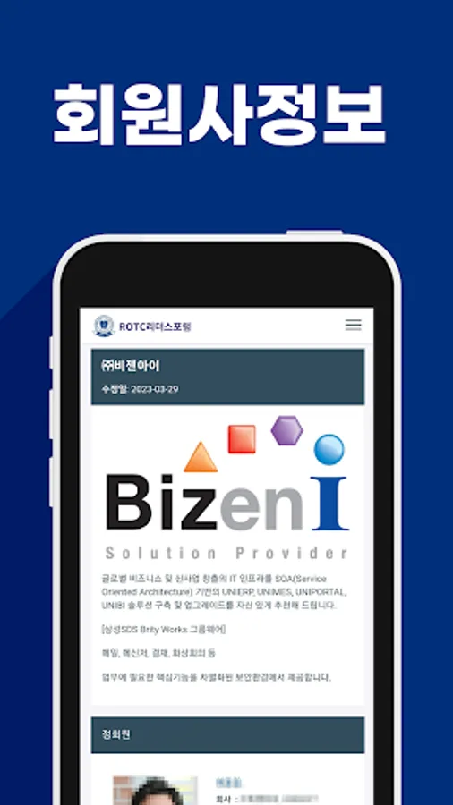 Korea ROTC Leaders Forum is a mobile member handbook to share business information and support active exchanges among members.