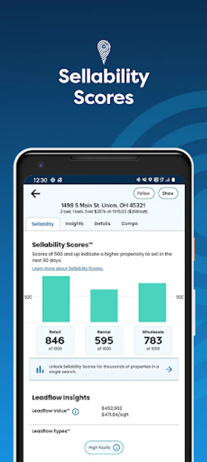 - Industry-leading Ai-driven Sellability Scores that help you analyze the potential for a deal and find motivated sellers every time.