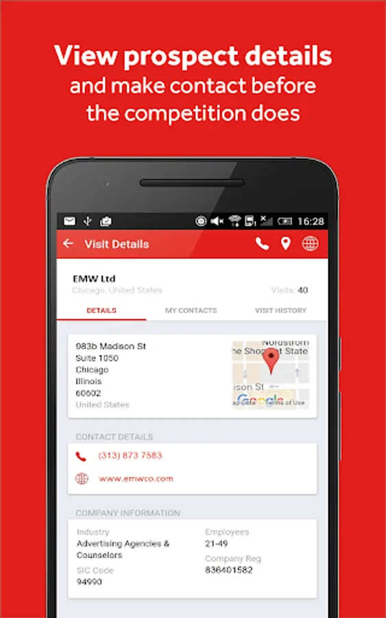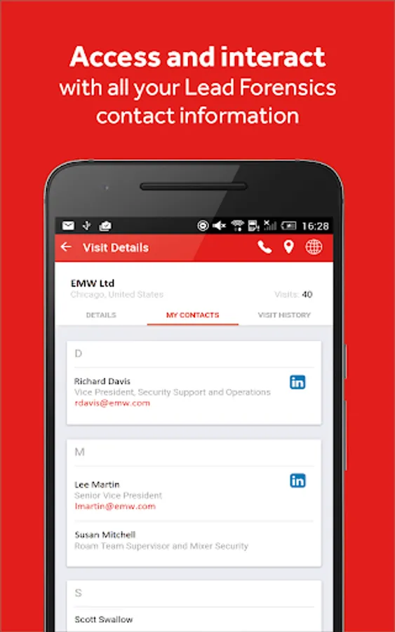 Access your Lead Forensics contact data from any location, complete with map and directions enabling greater opportunity for face-to-face meetings.