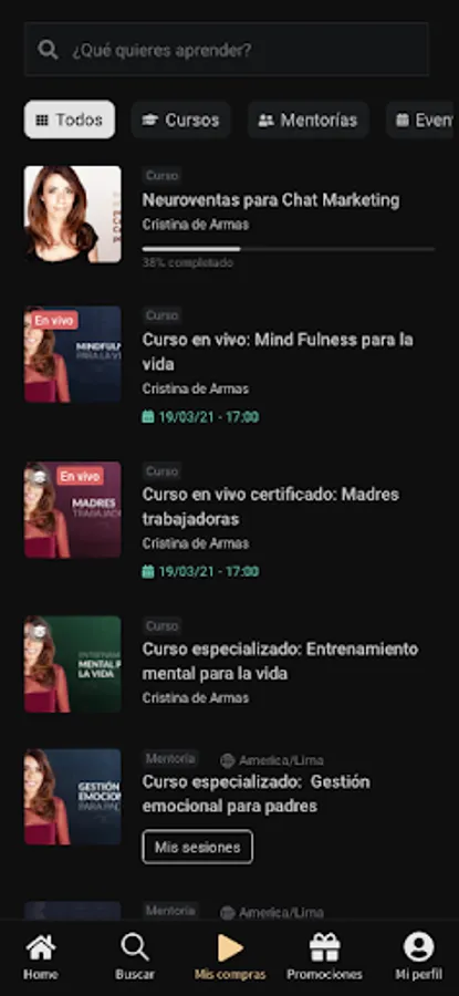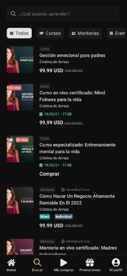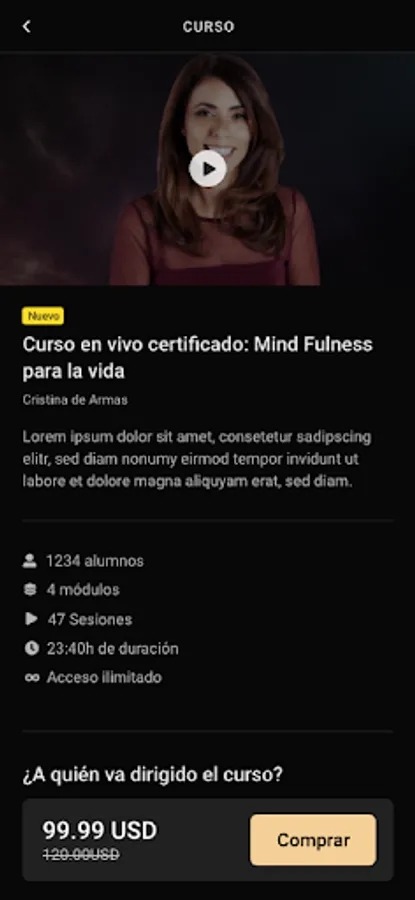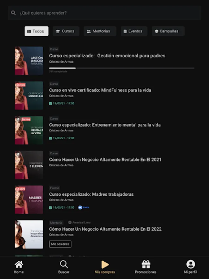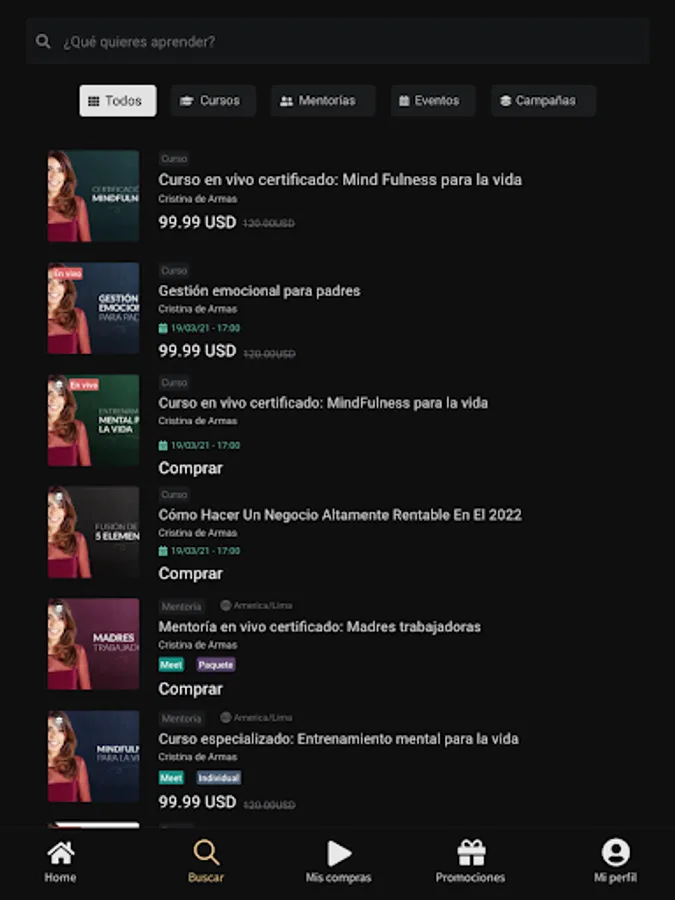The purchase of the courses will be made only through the partners' website, so the application will only be to view the content already acquired.