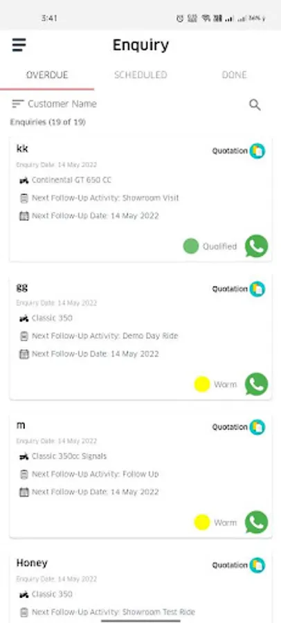 - Digitises your entire sales process right from "Creating of Lead", through "Test Rides", through "Booking" and till "Delivery".