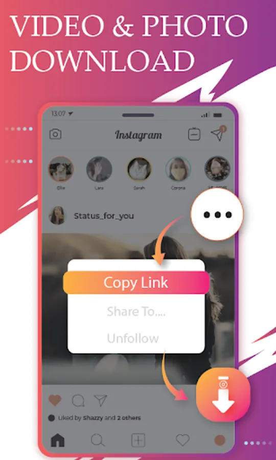 • Lets you download stories, videos, pictures and posts easily and quickly directly from Instagram