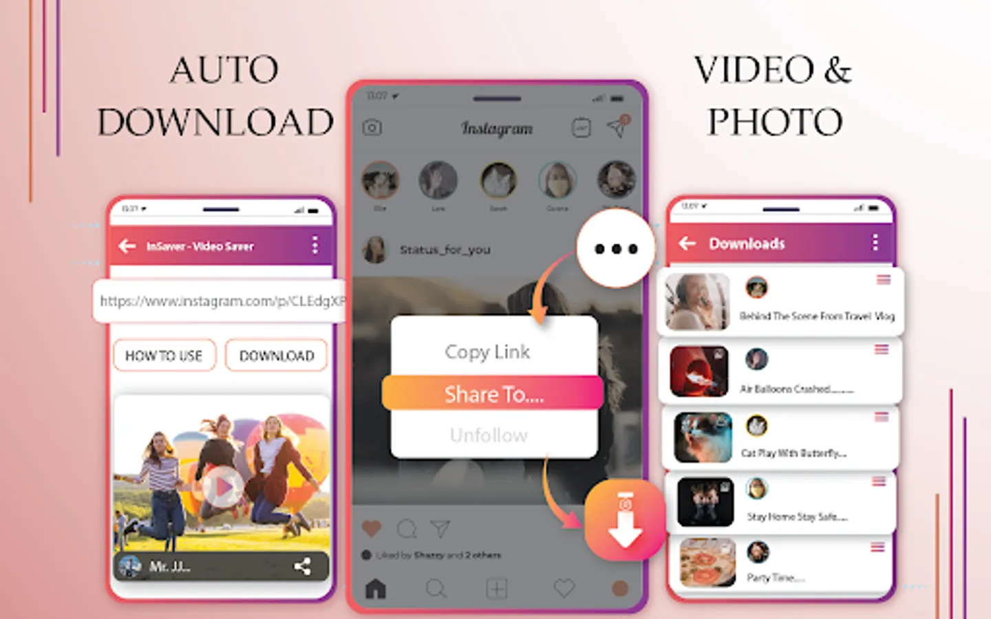 Download Insaver app and start downloading your favorite videos, stories and posts.