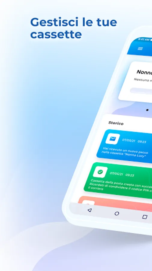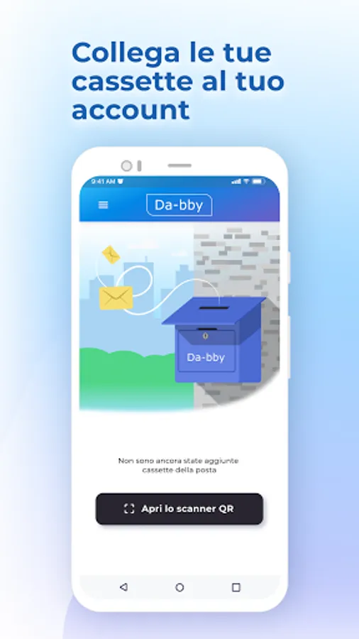 After opening the app for the first time, just scan the QR Code of your Da-bby cassette and in a second it will be saved on the system. From now on there will no longer be the problem of waiting at home for packages and the fear that they will arrive damaged.