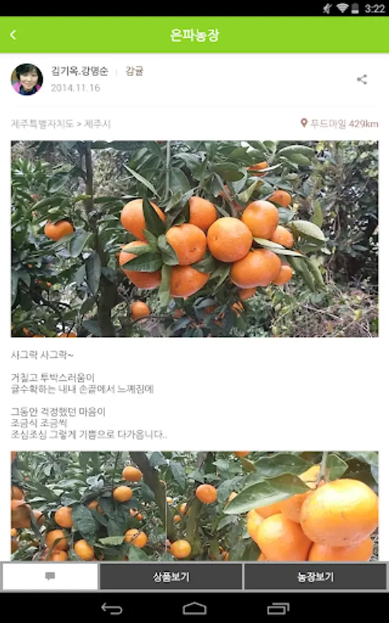 소비자는 실시간 생산정보를 확인하며 농산물을 구매할 수 있습니다.