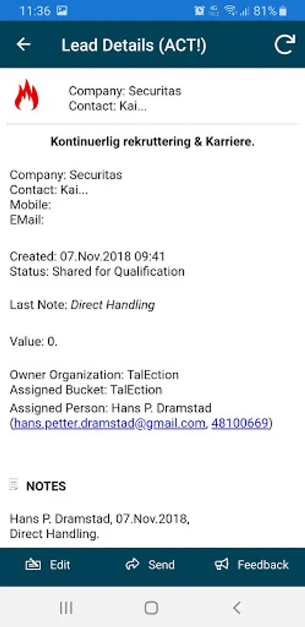 * Create a new lead with company name, contact information, lead quality, lead source, comments and send it to your own (or other) company for follow up.