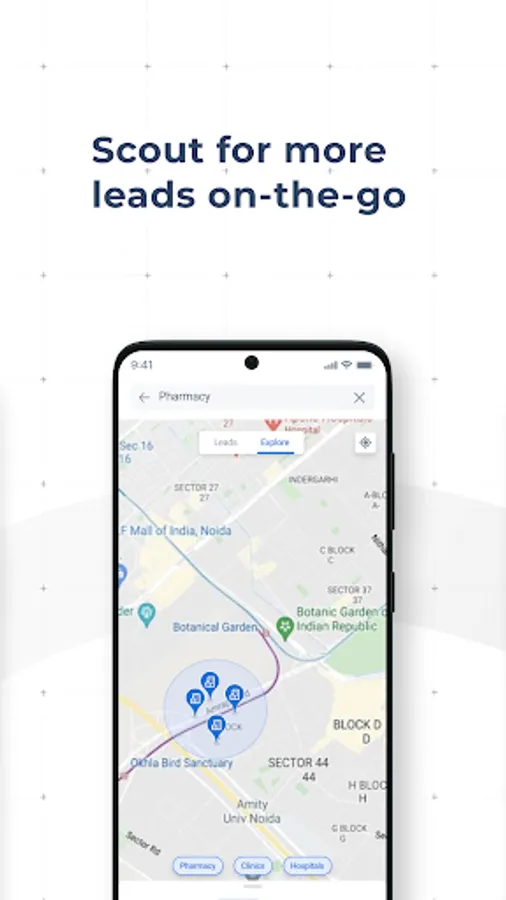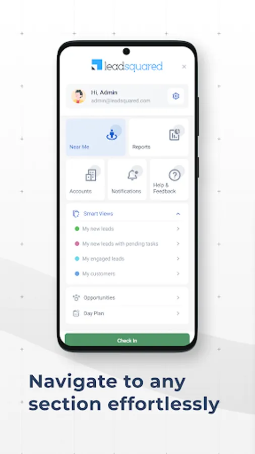 Check which leads are near your location and drop in to say a quick hello. Scout for newer leads around you while you are out on the field. The app will also alert you if there is a pending task in your vicinity.