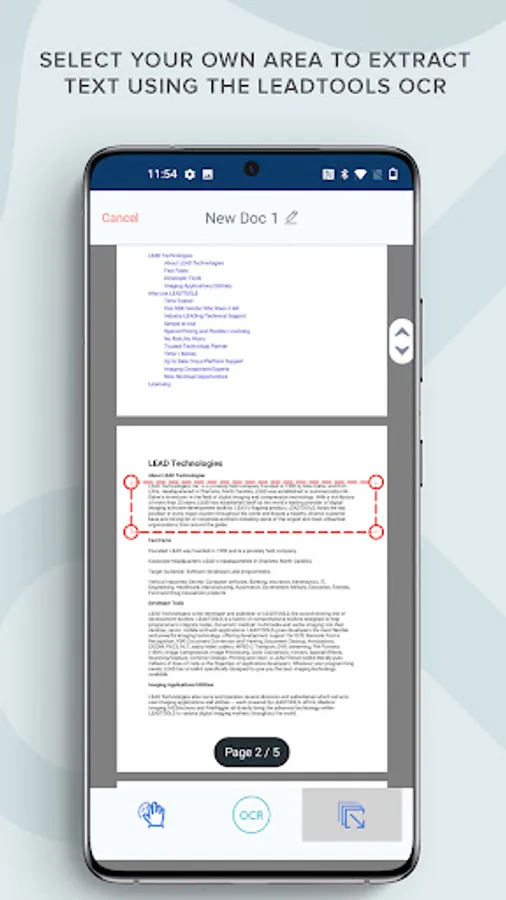 • Select a portion of an image to export to raw text with two select area modes: Selection Rectangle or Touch & Drag