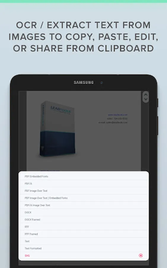 • OCR, extract, copy & paste the text from an image taken with your phone’s camera or photo gallery for editing and sharing