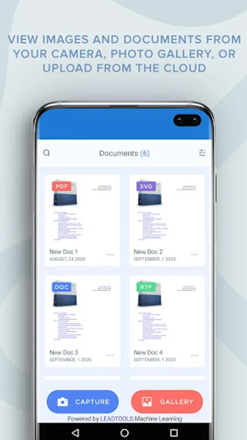 The LEADTOOLS Document Viewer gives users the ability to view, share, and convert documents and images into many different file formats. Users have a variety of options to upload documents through live capture, photo gallery, or the cloud.