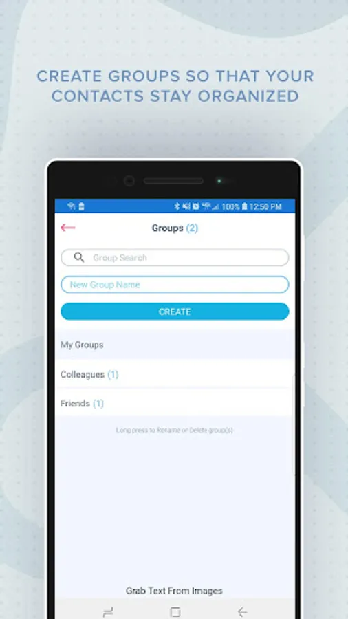 - Easily create groups and manage them: add, remove, rename, and share contacts