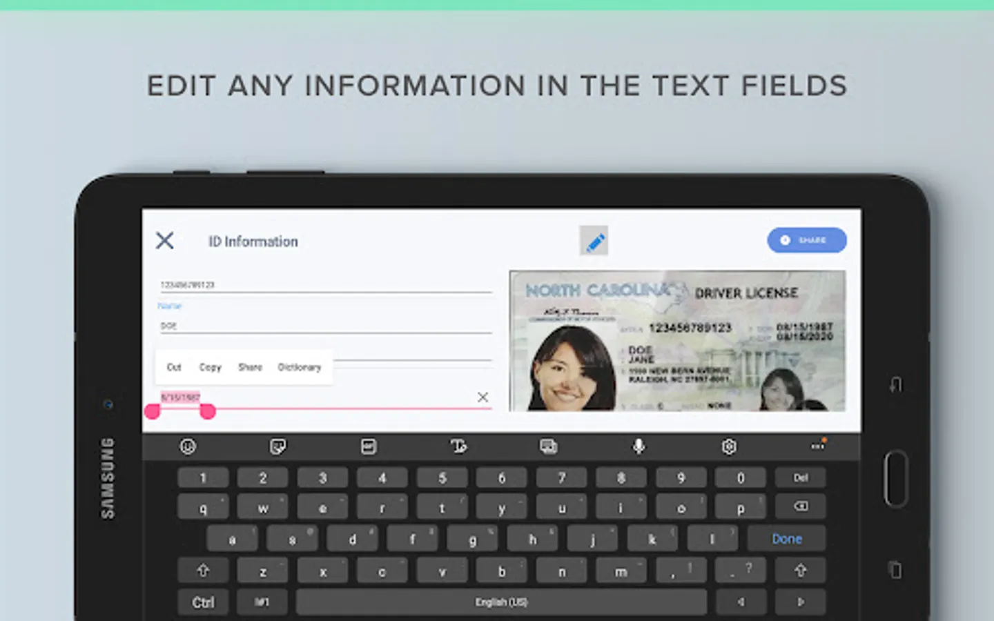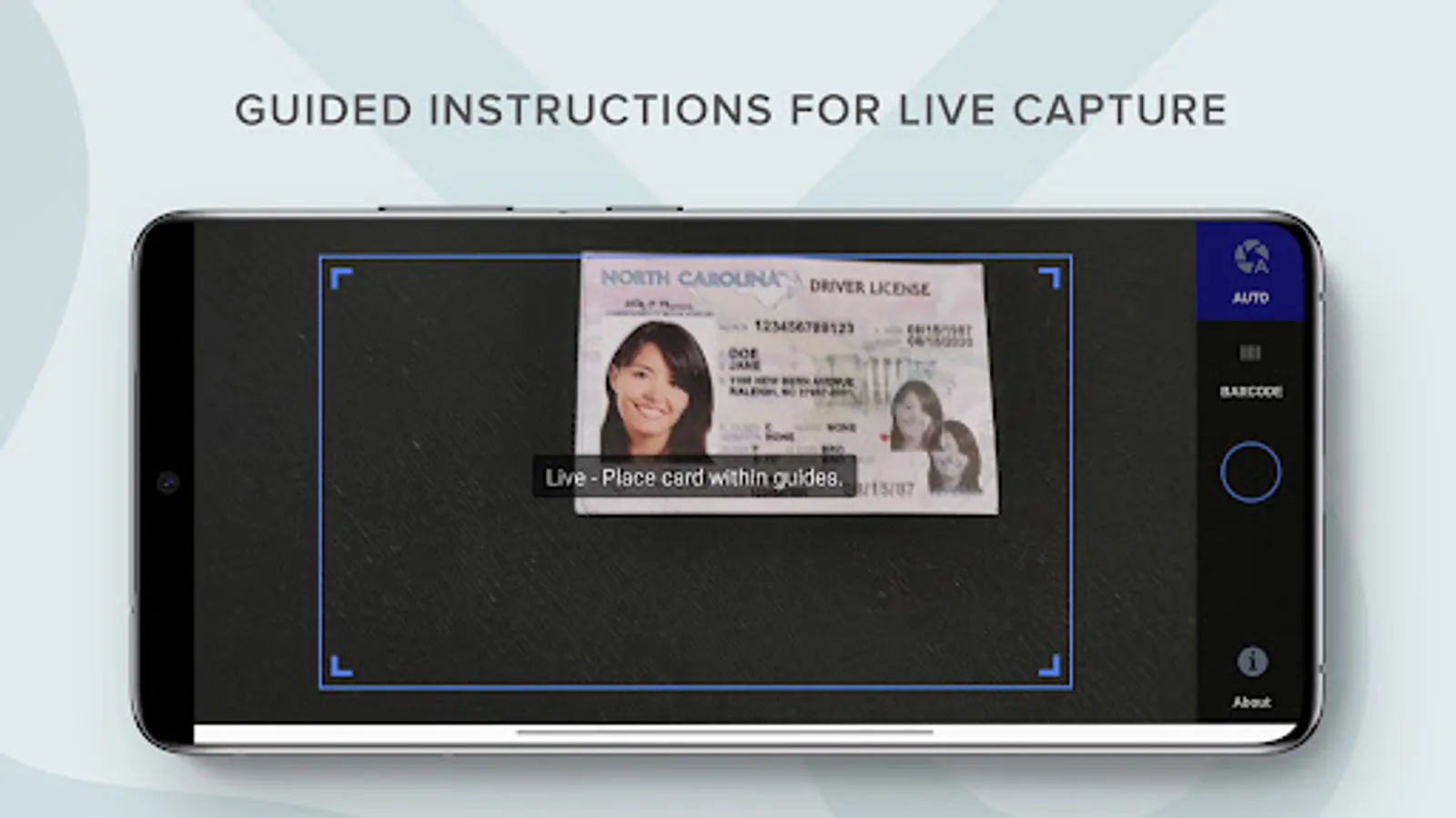 • Automatically extracts data from real-time video and still images of driver’s licenses, work authorizations, and identification cards.