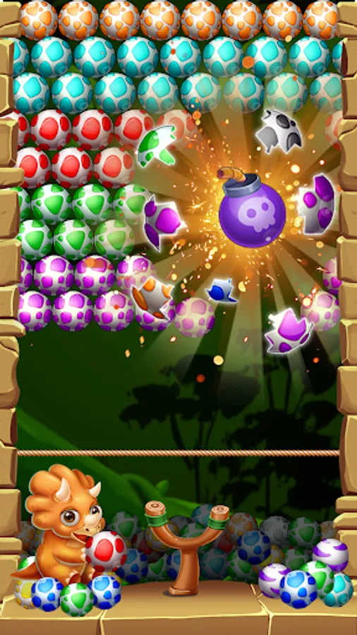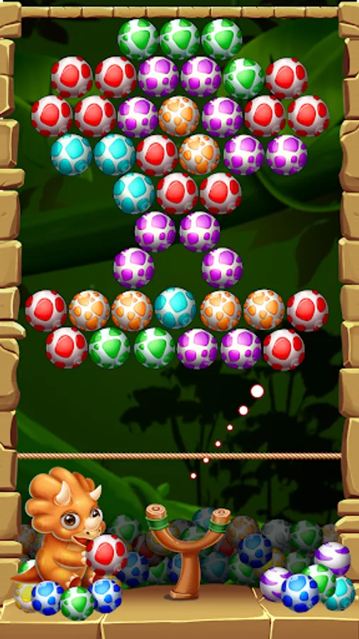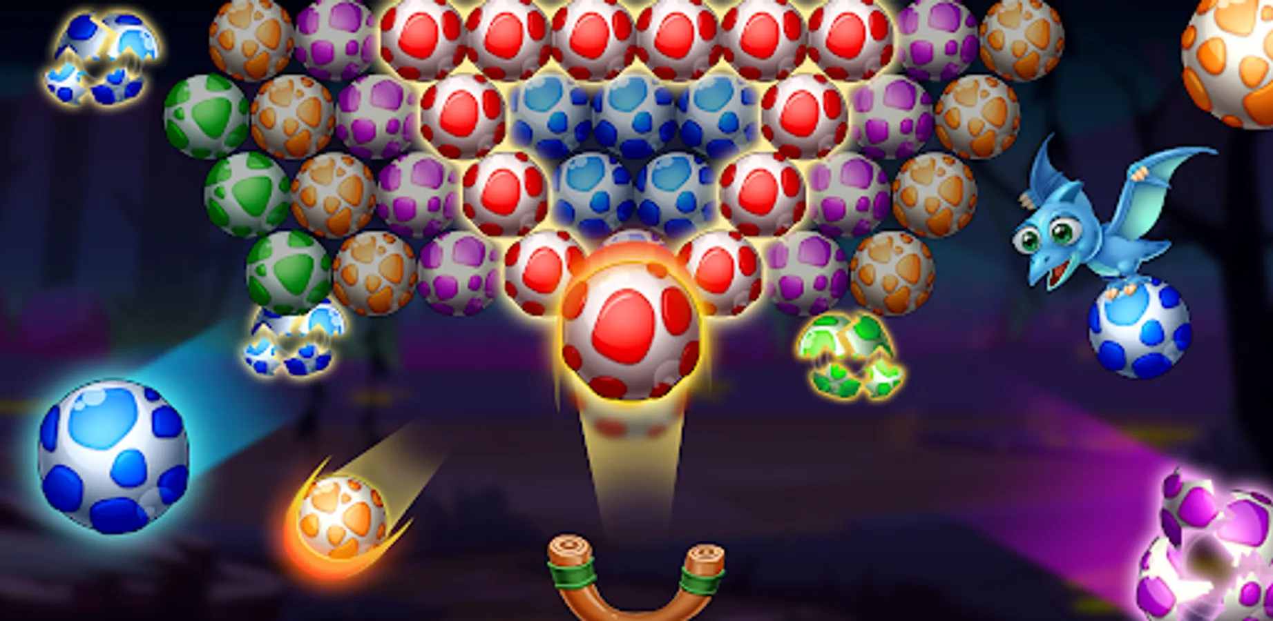 The game come with different game modes: classic, arcade and timming bubble shooting. You will tackle with each level with different ways and get rewards after that. Shoot the eggs, bubbles to save litte cute dinosaurs by matchhing at lease 3 same color egg.