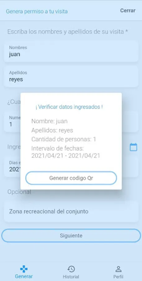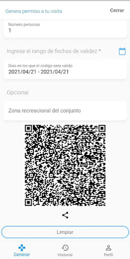 This application consists of the development of a low-cost digital tool to strengthen the security of closed residential complexes or buildings that do not have the economic arm to acquire technology that allows complying with the relevant and mandatory protocols for safe access and visitor control. . The purpose is to design a mobile application that allows users to generate QR codes to visitors, so that when they enter the complex, they show the security guard such code, it is scanned and the data is verified through the application. of the owner and the visitor who is entering.
