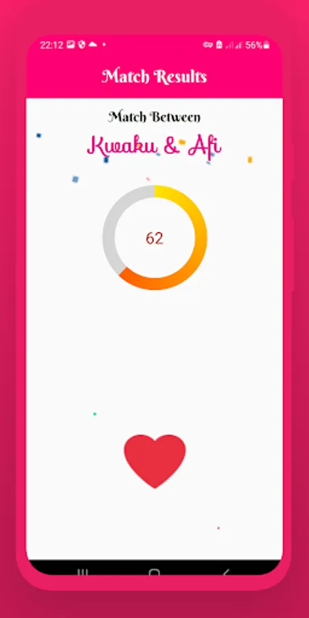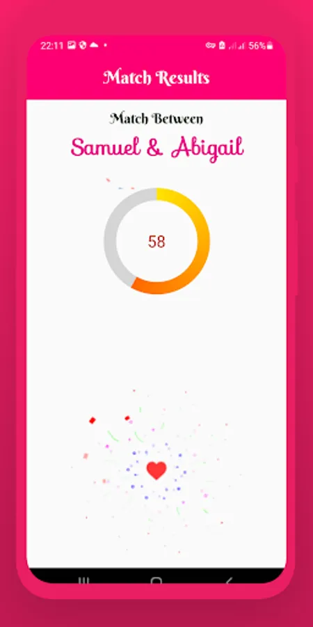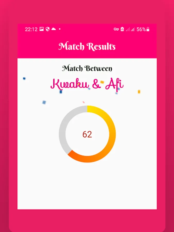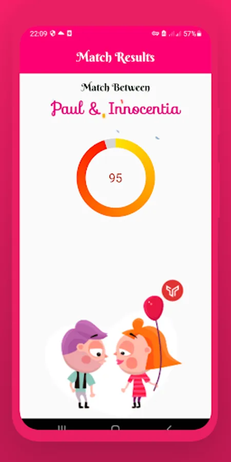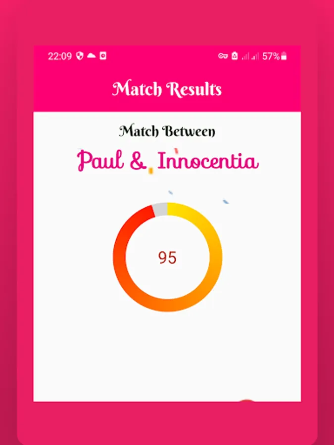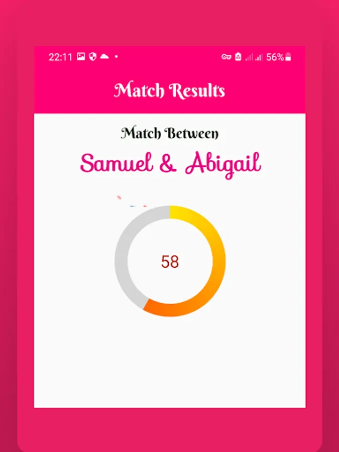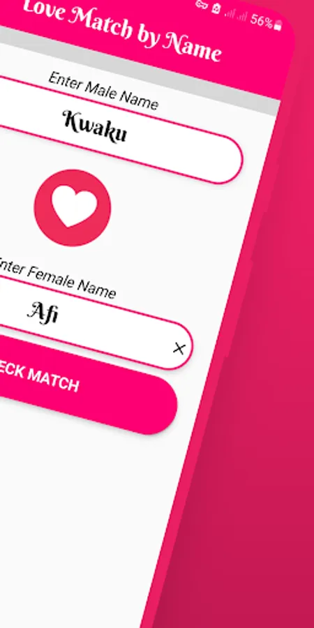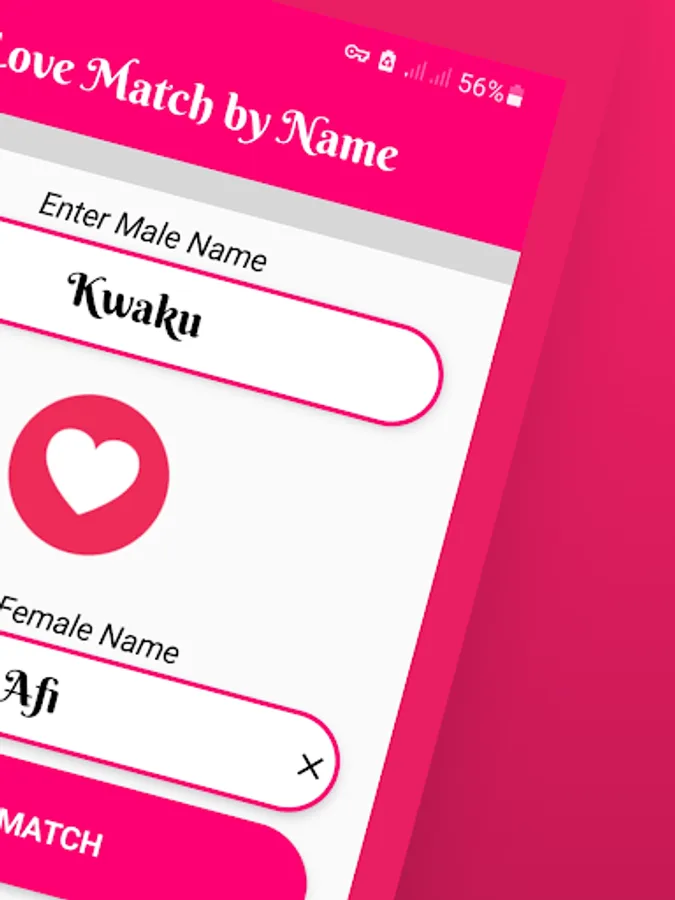 The Love Match Application uses your names and your partners name, and calculates compatibility percentage. This application uses mathematical calculations (algorithms) to determine percentage match.