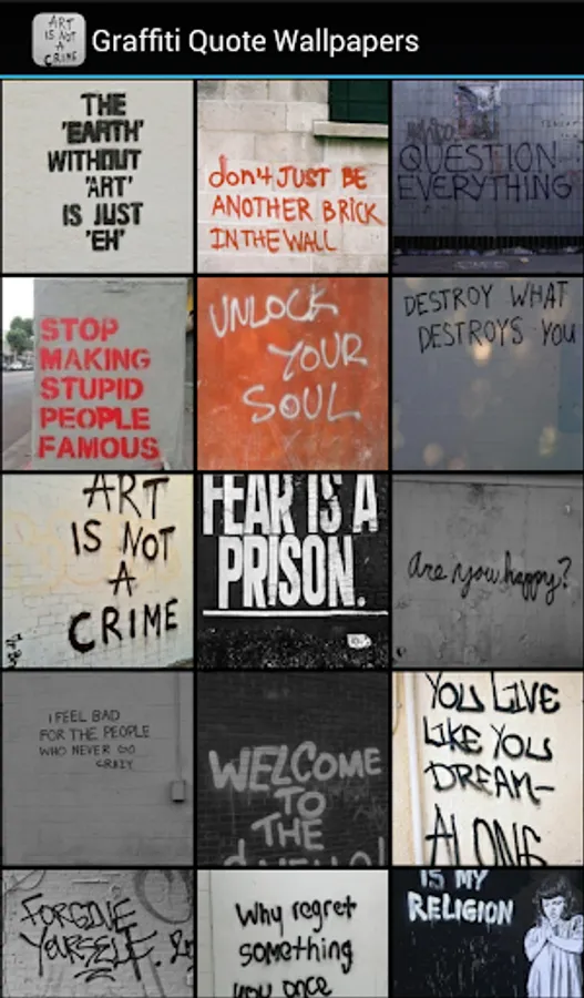 The world is full of wisdom and art, and not all of it is found in museums or galleries. Some of it is simply spray painted on abandoned buildings, turning a blank wall into a message of truth – whether that truth is happy, sad, inspirational or puzzling. If you’re the kind of person that appreciates the gritty real-life beauty of city streets, real people, and meaningful graffiti, you’ll love the wallpapers in this app!