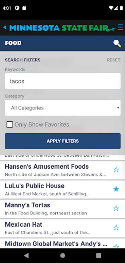 The Minnesota State Fair App is the official virtual guide to finding your way around the Fair. It features our popular Food Finder and Merch Search tools along with the Fun Finder including entertainment and event schedule information.