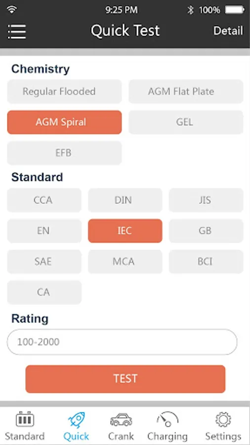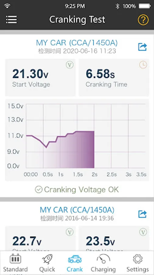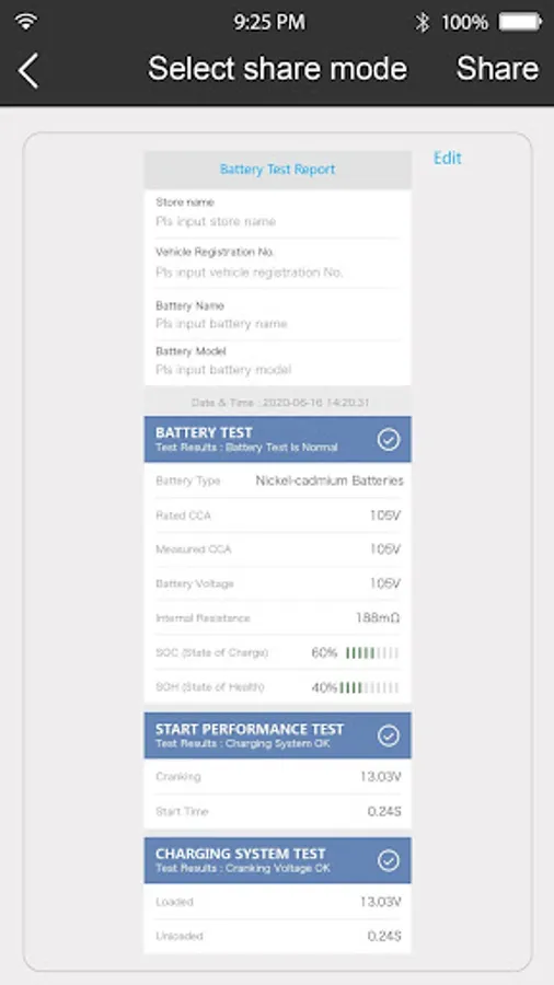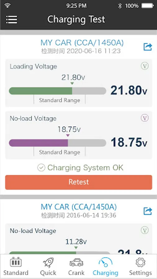 BT100 is the App used for Bluetooth battery tester. It can control battery tester devices via Bluetooth. User can easily do test on battery condition, cranking and charging systems. All data can be saved and historical professional result can be shared by internet and printed out.
