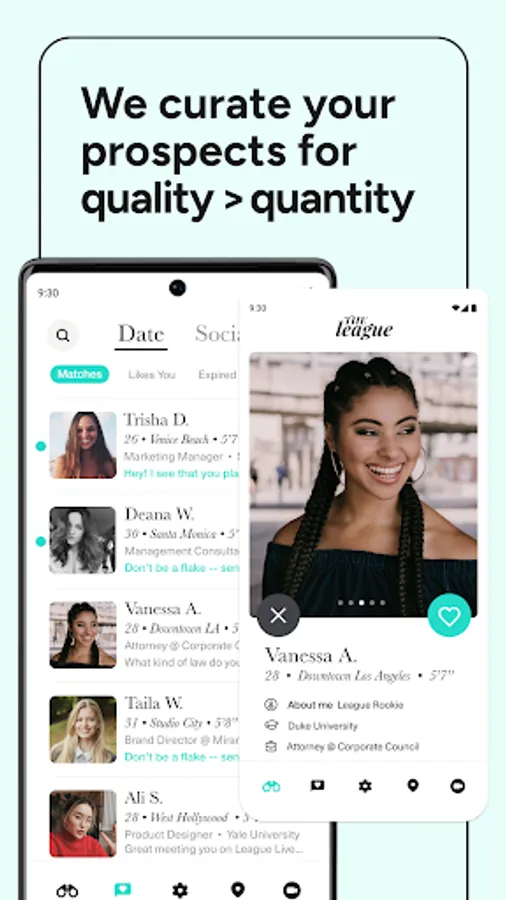The League is a dating community designed for the overly ambitious that know what they want & refuse to settle. While some may call us exclusive or elite, in reality, we just have standards for entry - unlike every other dating app out there. We believe 3 quality matches are better than 100 bad profiles. Say goodbye to endless swiping, and hello to smart, sexy, and successful matches. While your mom may call you picky, we call you self-aware.