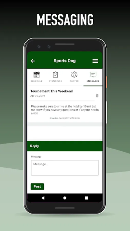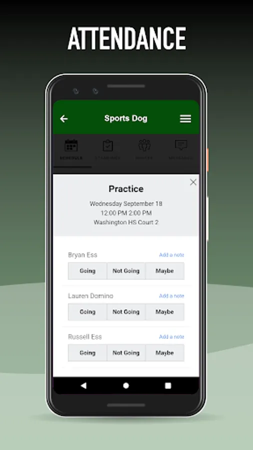 The Team Sportsdog app provides parents and coaches all of the tools they need to participate on their team. Perform the following team activities right inside our new app.
