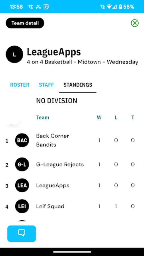 - Receive notifications for game reminders, schedule changes, and new messages