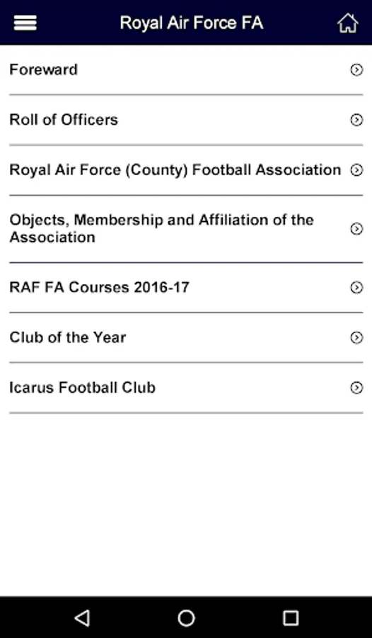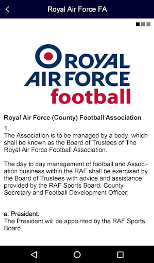 Directory and Handbook App for the Royal Air Force (County) Football Association