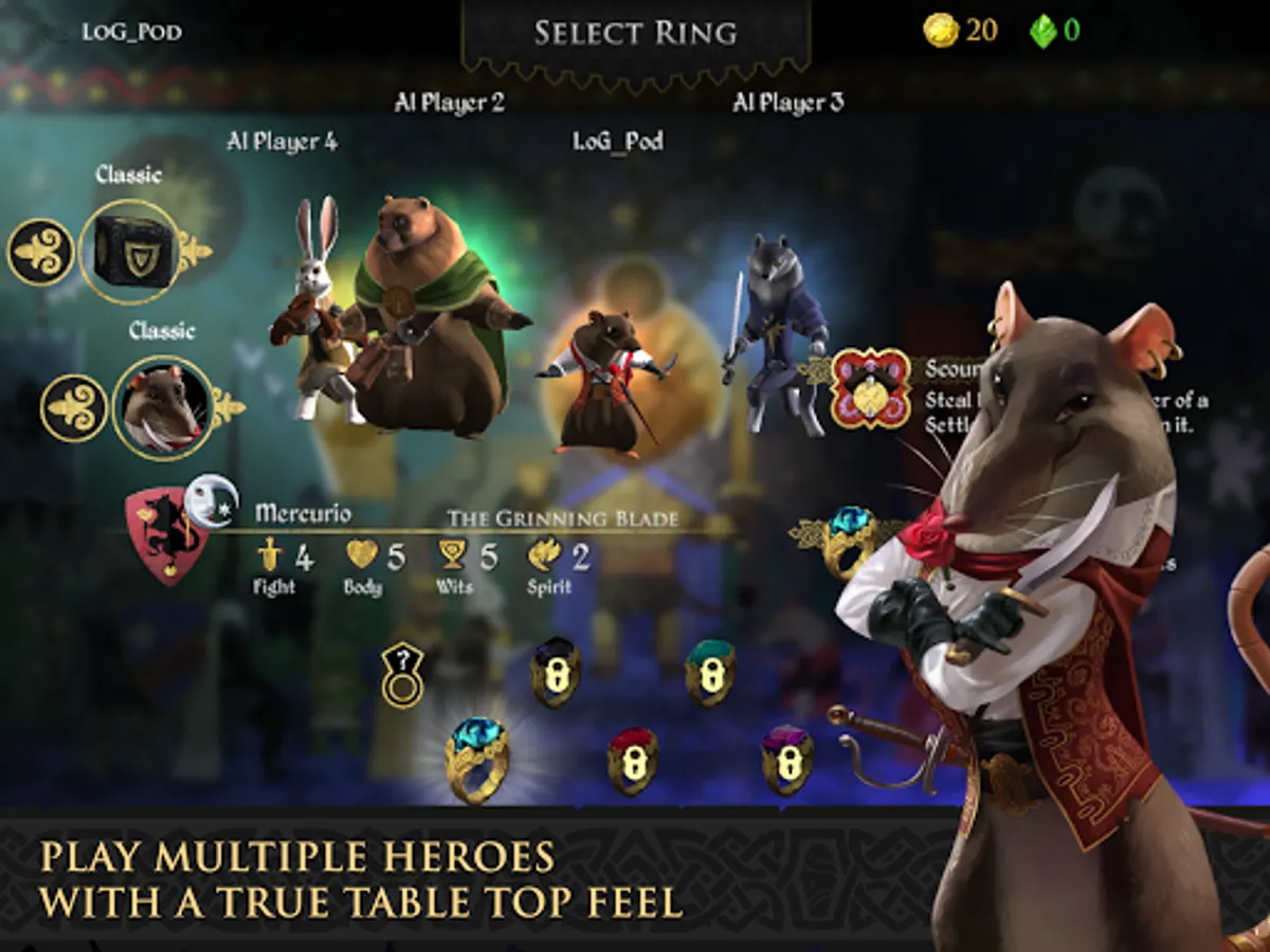 • Multiple Playable Heroes: Each unique Hero possess a special power, stat line, AI personality and can be equipped with an Amulet and Signet Ring to further match your playstyle.