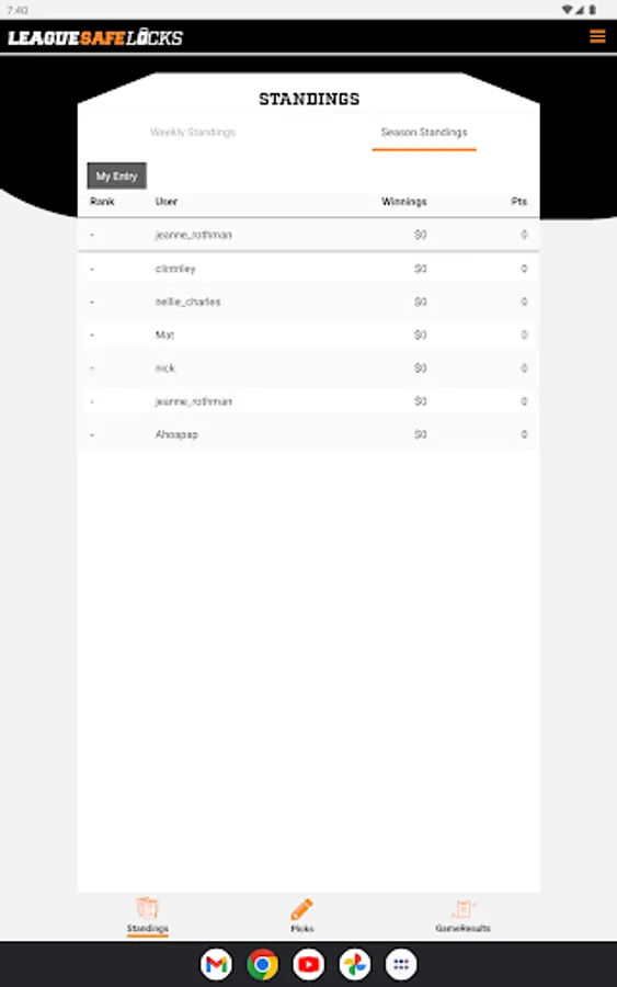 Nobody, not even your commissioner, has access to league funds until the season ends. Don't know or trust everyone in your league? Take advantage of our voting mechanism to ensure league members have a say in how end-of-season winnings are divvied up.