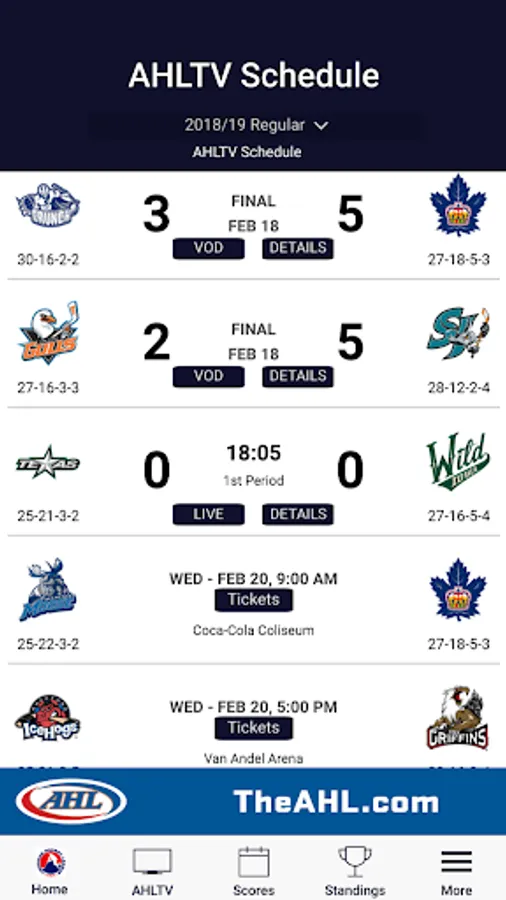 The official mobile app of the American Hockey League, featuring real-time scoring data direct from each arena. Follow every game in real time with complete box scores, game summary and up to the minute player stats. The AHL app also features past Scores, future Schedules, Standings and both player and goalie stats.