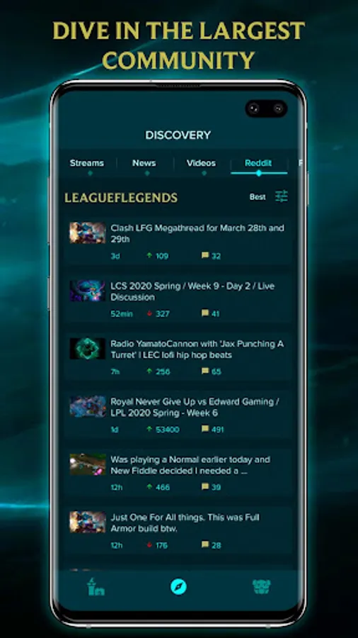Leaguing unites required things of League Of Legends like streams, news, videos, wallpapers, and whatnot in one app to stay competitive and updated.