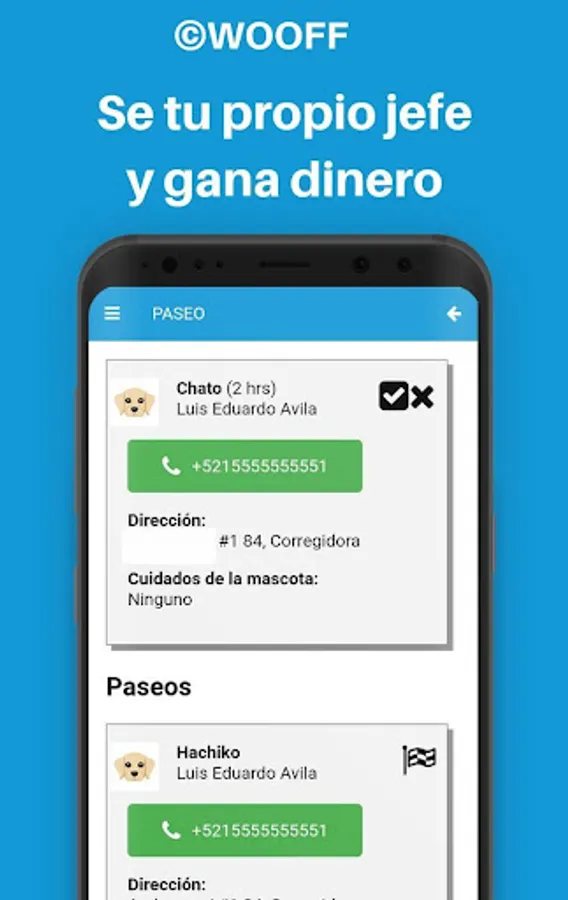 WOOFF PASEADORES is an application to walk pets in the safest and most responsible way. Without having to look for risky jobs, or have bad treatment. With WOOFF choose the locations and colonies where you can walk.
