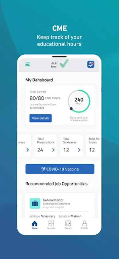 Anat is a unified digital platform for health practitioners who are registered by the Saudi Commission for Health Specialties in the Kingdom of Saudi Arabia.