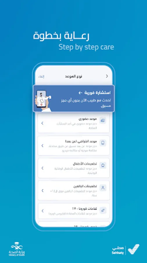 Sehhaty is provided by the Ministry of Health in Saudi Arabia, in line with its vision to increase access to care, improve standards of healthcare and increase health awareness in the community.