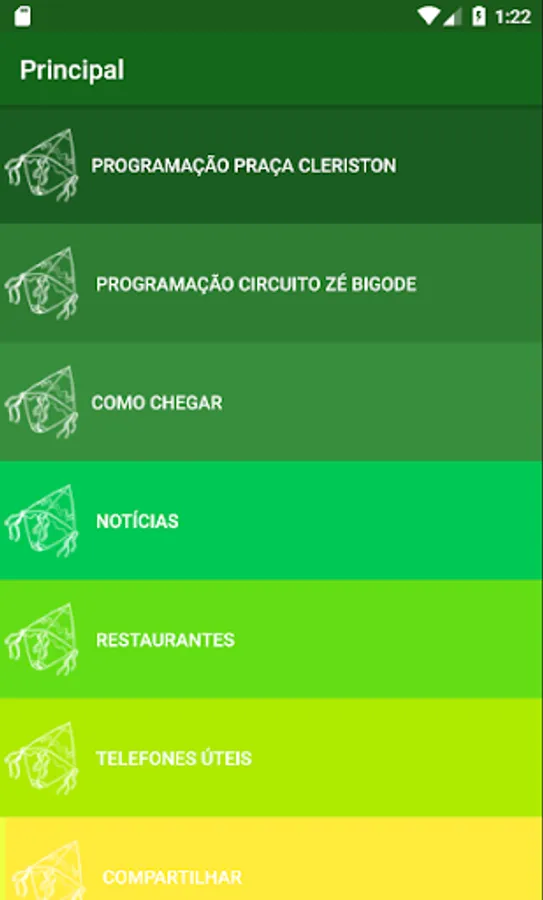 also includes useful telephone numbers as Samu, Military Police etc. Also with notifications when the main attraction start and other information.