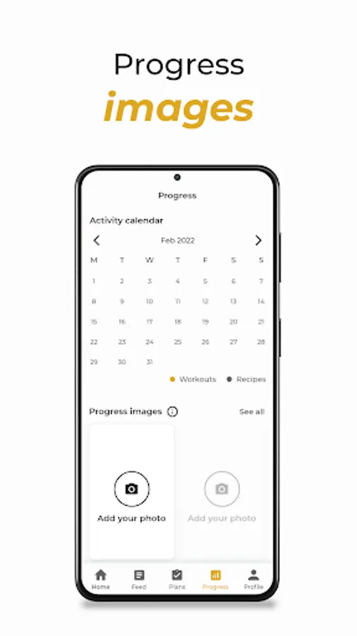 Take workout selfies. progress pictures, log weights you lifted, and see all you progress in your calendar.