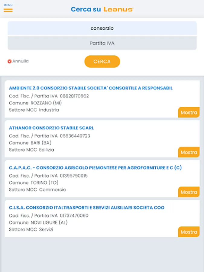 Search any Italian company by name or tax code and view the main data of the latest available financial statements.